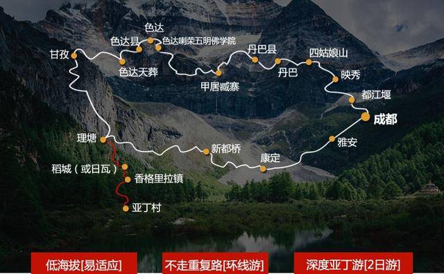 4、“甘孜–香格里拉镇”此天的行程较为饱和,尽量节省游玩时间,或中途入住稻城县。如时间充足,可划分为两天游玩。