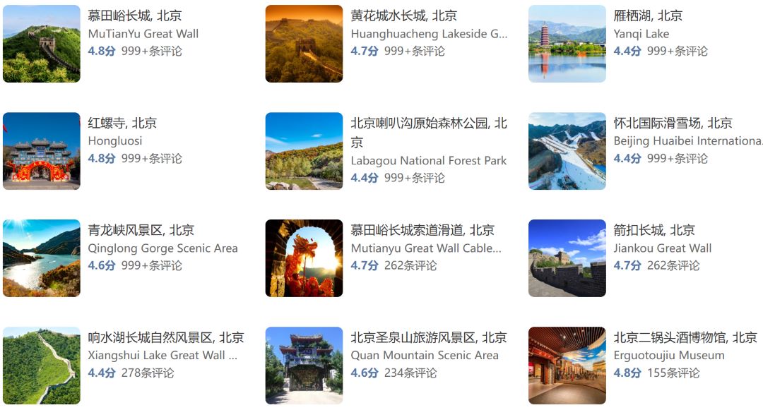 1. 长城文化线:慕田峪(1天)-箭扣徒步(半日)-响水湖梅花(季节性)