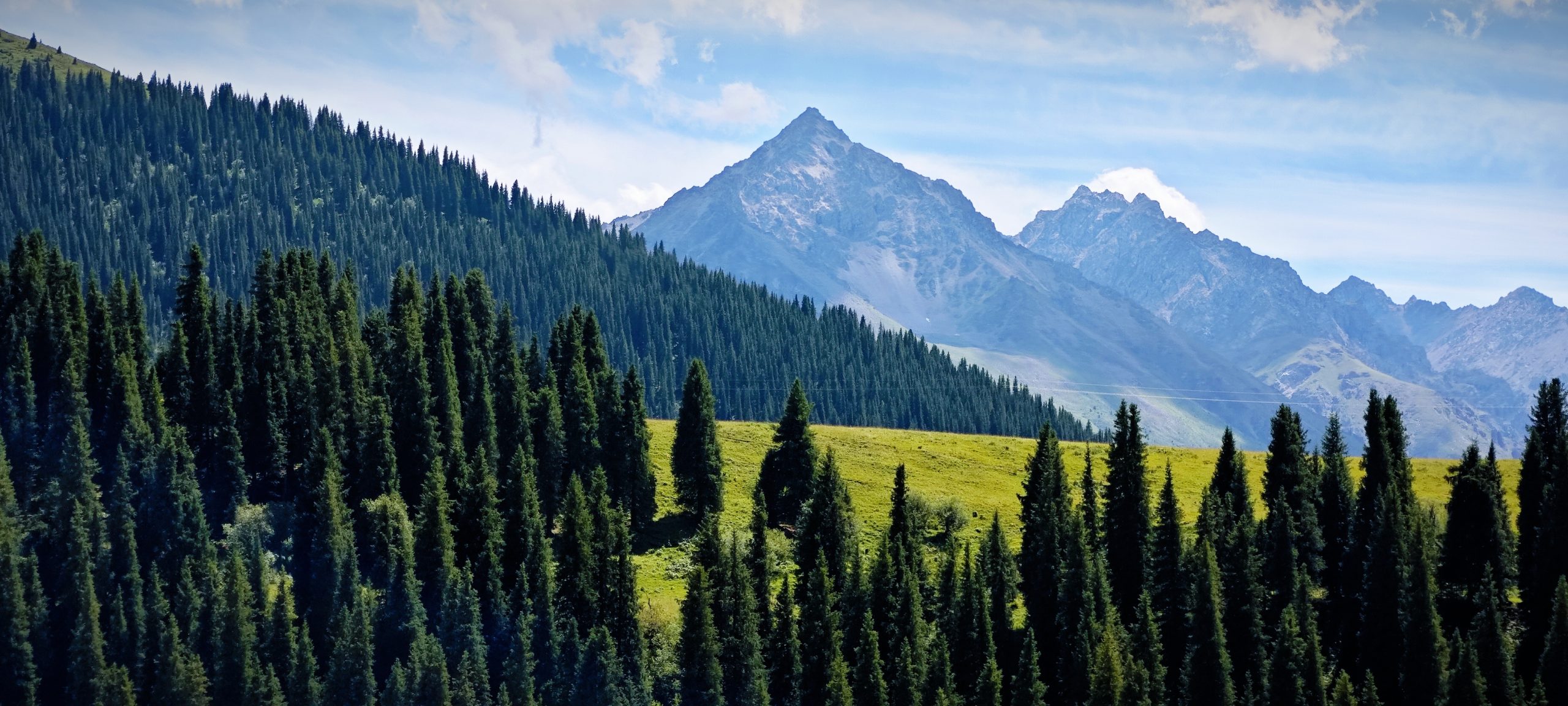 垂直景观带明显:河谷草原、山地草甸、雪岭云杉林、雪山冰川。野生动物可见土拨鼠、金雕、天山马鹿。